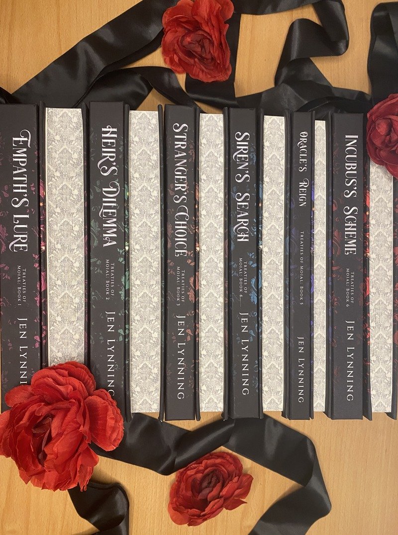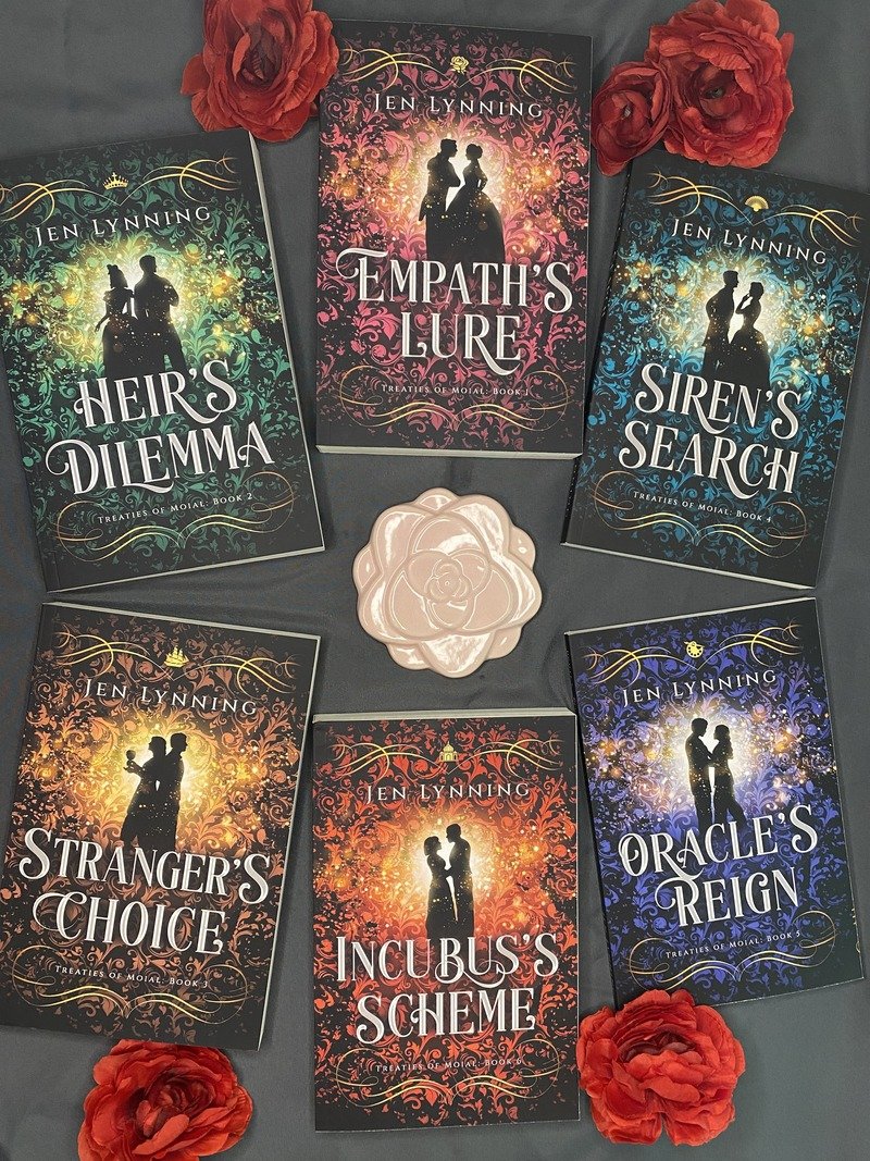 Treaties of Moial – 6 loosely connected gaslamp romantasy books with royalty and political intrigue. Read more about each book by clicking on the titles below.